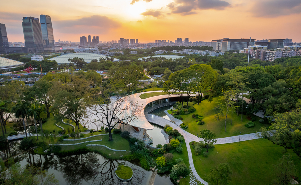 作為國賓館,松園賓館是嶺南園林的“代表作”。項(xiàng)目延續(xù)“疏林草地”風(fēng)格,保留原有喬木,將原有綠島提升為時(shí)花花境,并采用生態(tài)自然手法,以竹子、中型喬木為骨架,弱化建筑生硬感;同時(shí),對臨水平臺(tái)進(jìn)行改造,提高...